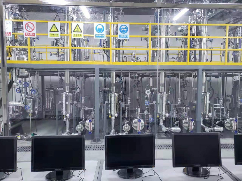 (3)工艺配管设计:满足工艺流程需要外,按照实际生产装置配管方式配管,管件和管道之间焊接连接、法兰连接、附件齐全,综合考虑阀门、管道及管件布置等操作元件的可操作性、安装检修便利性。
