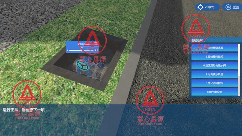 污水处理厂虚拟仿真(A2O工艺)巡检模块要求在生产过程中对整个厂区进行日常巡检,检查各个设备是否正常工作,以便于及时排除故障,正常开工。