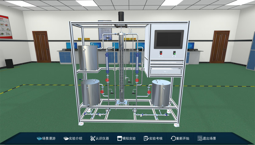 用户通过鼠标+键盘共同操作,可以在客官的场景内真实的查看萃取实验虚拟仿真。