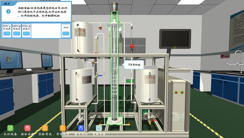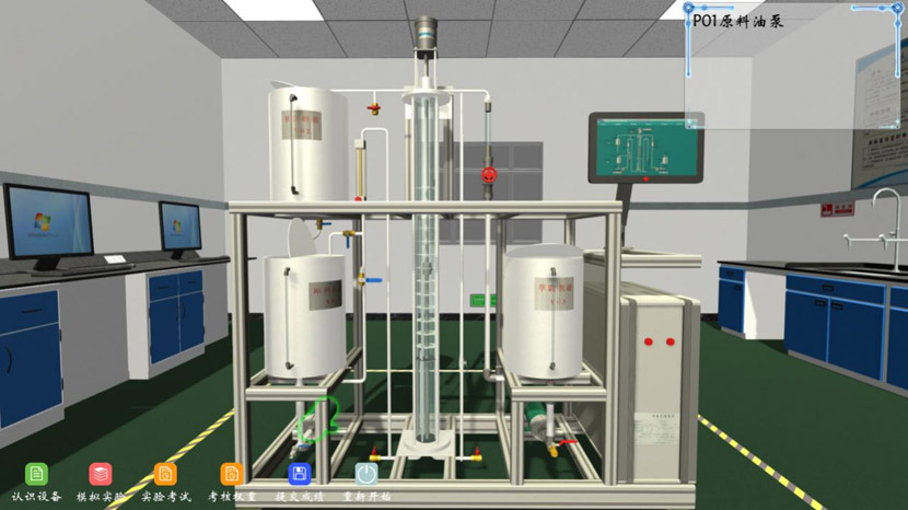现实实验室中,学生众多、设备缺乏,学生们缺乏实操和反复实验经验,而萃取实验虚拟仿真装置可以让学员们在虚拟仿真场景中,完成模拟实验,左上角有操作提示,场景中也会有光标提示,帮助学生进一步熟悉实验流程。