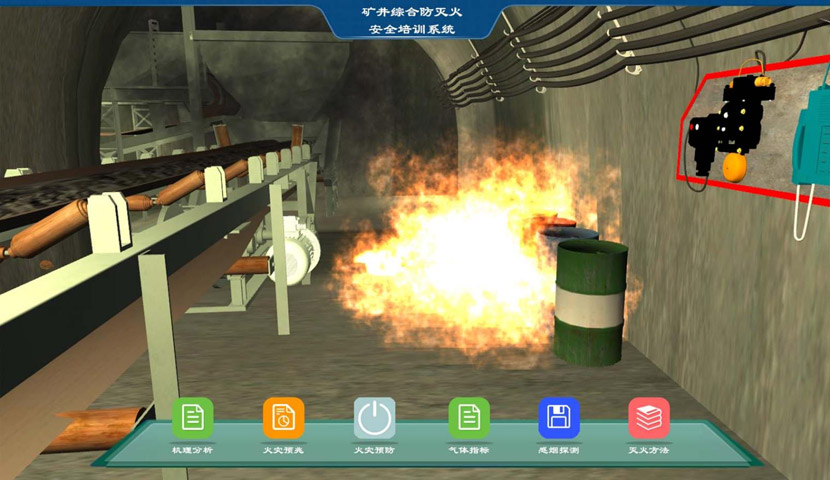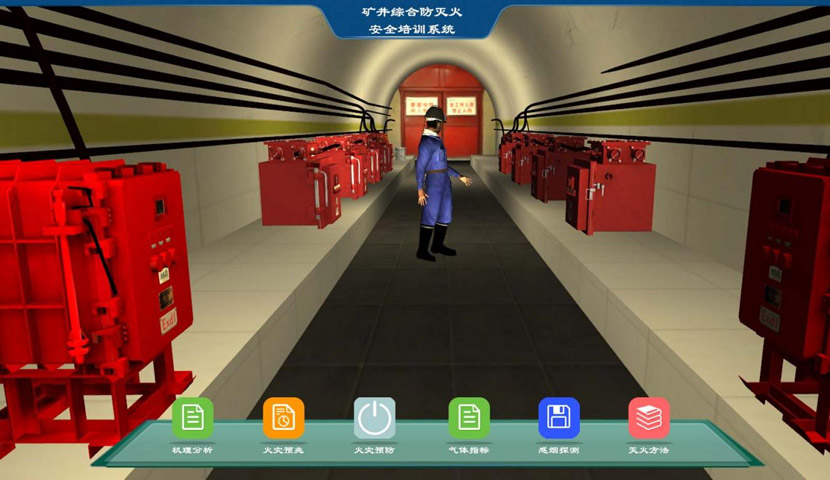 安全事故的特点是:具有危险性、不可逆性,传统的安全培训借助事故后的图片和文字教条方式说教,达不到很好的培训效果。通过虚拟仿真技术还原事故现场或预演事故应急预案,使学生通过仿真实验,掌握矿井通风的基本理论和实际操作知识以及矿井瓦斯、水、火、煤尘等灾害的发生、发展规律,并运用科学技术手段,防止各类事故的发生,达到安全生产的目的。矿井安全仿真实训系统现了课堂教学与实践教学的有效结合,解决了大学实习经费困难、完全依赖煤矿现场的实习模式;同时通过虚实结合的虚拟仿真系统,学生能够直观掌握复杂、抽象、实践性非常强的专业知识,提高了学生的参与度和积极性,在实验教学和学生实践活动中发挥了巨大作用。